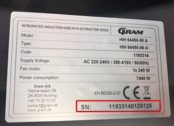 Sarjanumero löytyy tyyppikilvestä, joka sijaitsee metallisen rasvasuodattimen alla olevassa lokerossa.
