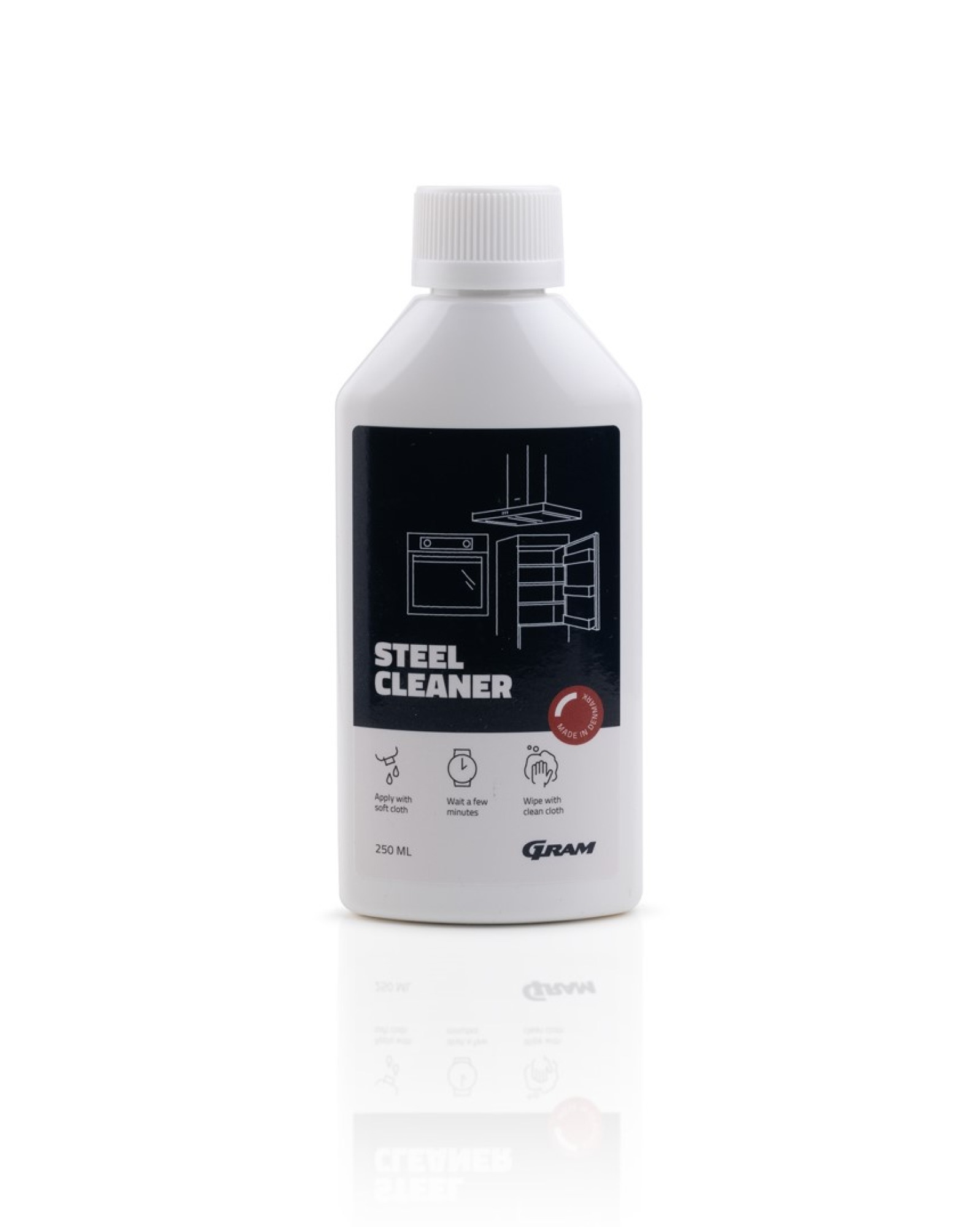 Stålrens kan anvendes til alle GRAM produkter med rustfrie ståloverflader.